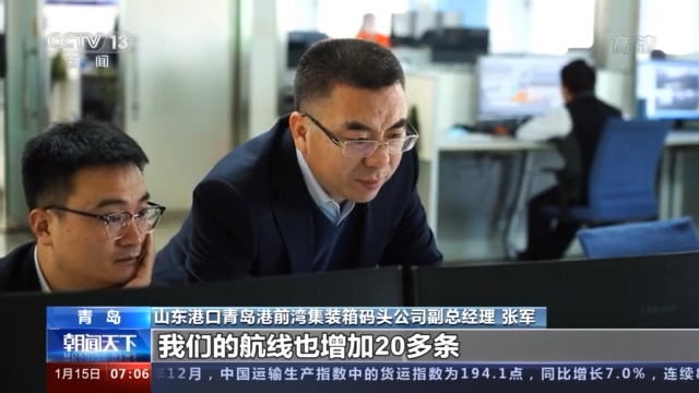 山东港口青岛港前湾集装箱码头公司副总经理 张军:从去年下半年开始已经成为常态。我们的航线也增加20多条,其中外贸航线增加了14 条。