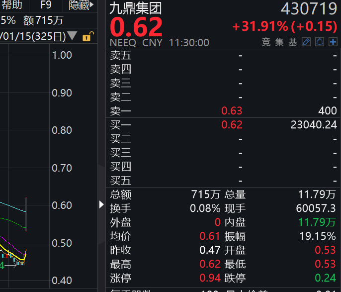 图片来源:Wind然而,收到两份行政处罚事先告知书后,1月15日,截至午间收盘,九鼎集团股价上涨31.91%,股价为0.62元,总市值仅为93亿元。实际上,自2014年九鼎集团新三板上市后,在2015年市值就达到千亿,迅速成为新三板第一股。至今,千亿市值缩水至93亿元,蒸发超900亿元。