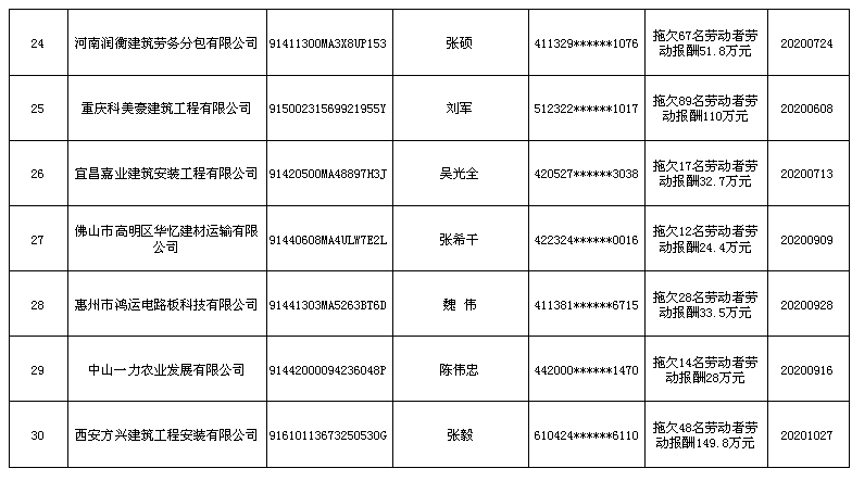 原标题:人社部公布2021年第一批拖欠农民工工资“黑名单”