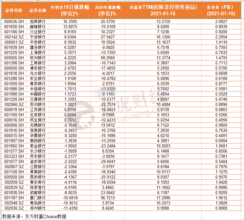 受此影响,1月15日,银行股全线飘红。