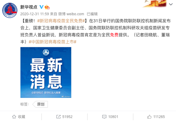 中国疫苗已被证实在安全性和有效性等方面表现良好