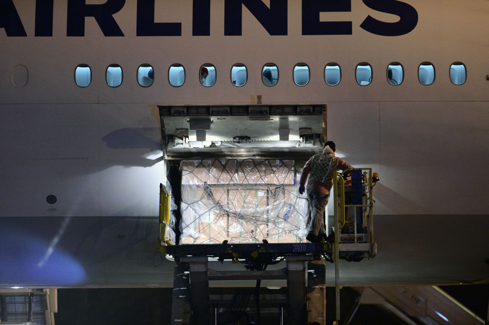 12月30日,在土耳其安卡拉的埃森博阿机场,工作人员从飞机上搬运中国科兴公司生产的新冠疫苗。新华社发(穆斯塔法·卡亚摄)