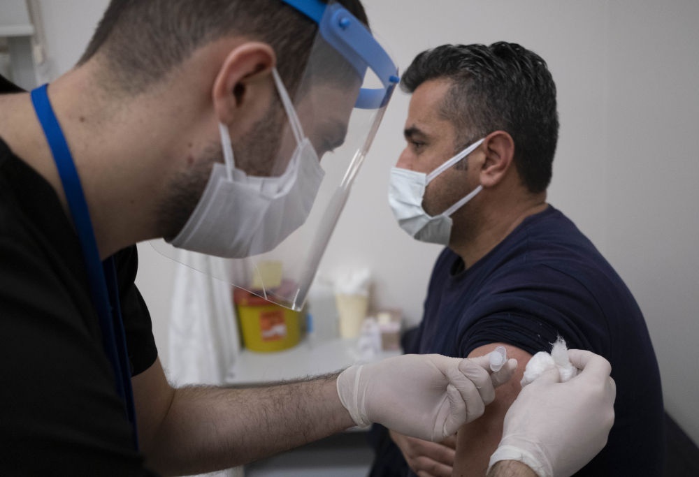 1月14日,在土耳其伊斯坦布尔,一名医护工作者接种来自中国的新冠疫苗。新华社发(奥斯曼·厄尔萨尔 摄)