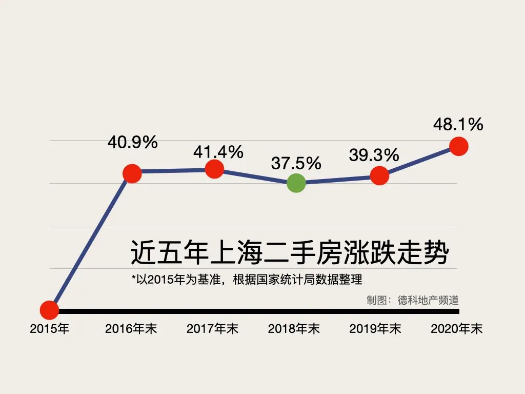 跟厦门一样,上海在过去五年中也仅有 2018 年是下跌的——下跌了 3.9 个百分点,但跌幅远小于厦门。