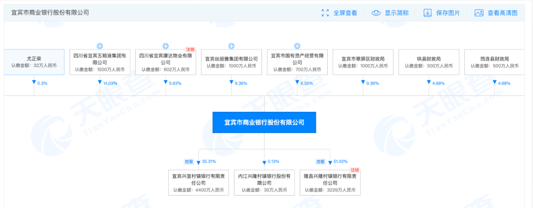 以增资完成后的最新总股本计算,该行前五大股东分别为:五粮液集团(19.99%)、宜宾市财政局(19.98%)、宜宾市翠屏区财政局(19.24%)、天风证券及其关联方武汉天盈投资集团(10.95%)、宜宾市南溪区财政局(8.12%)。