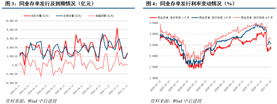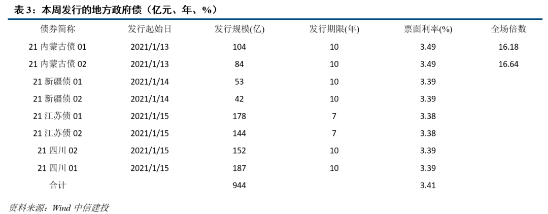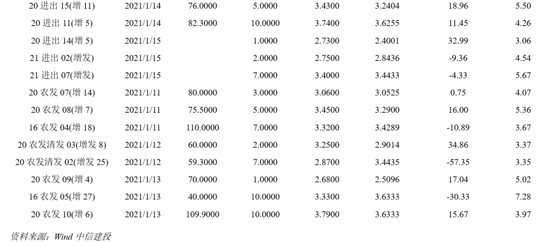 展望后期:国务院1月15日就2020金融统计数据相关情况新闻发布会上指出,2021年货币政策要稳字当头,不急转弯,稳健的货币政策要灵活精准、合理适度,把握好时度效,保持好正常货币政策空间的可持续性。同时,提出货币政策重点关注通胀、汇率、就业三个问题,目前我国通胀较为温和,考虑海外疫情不乐观、美国政治不确定性以及美国超预期财政刺激,汇率存在上行压力,2020年新冠疫情影响加大我国就业压力,恢复到疫情前水平仍有距离,存在呵护需要,由此认为货币政策很快转紧概率不大。本周5000亿元MLF不及预期,投放量对冲当日到期MLF以及即将到期TMLF,央行连续开展小额逆回购、持续地量OMO操作,进一步向市场释放中性货币政策信号。春节和税期临近,我们依旧保持继续货币政策定位维稳的预期。考虑近期我国多地疫情反复、鼓励就地过节政策,人情消费、旅游消费将相对降低,现金需求有所降低,同时目前市场资金依旧相对宽松、银行抵押品也相对充裕。因此,我们认为TRA、降准的概率不大,后期仍将以常规操作为主。综合判断,债券市场仍处于震荡波动阶段,预计10年期国债收益率的点位将在短期将在3.2%水平波动,春节后需关注1月社融及存单利率变化情况来进一步分析。整体看,尚无明确因素改变基本面及债市“前高后低”的整体趋势。