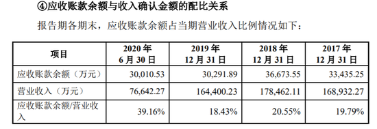 从上表还可以看到,2020年上半年,明泰股份应收账款余额激增,已经接近2019年全年的总和。