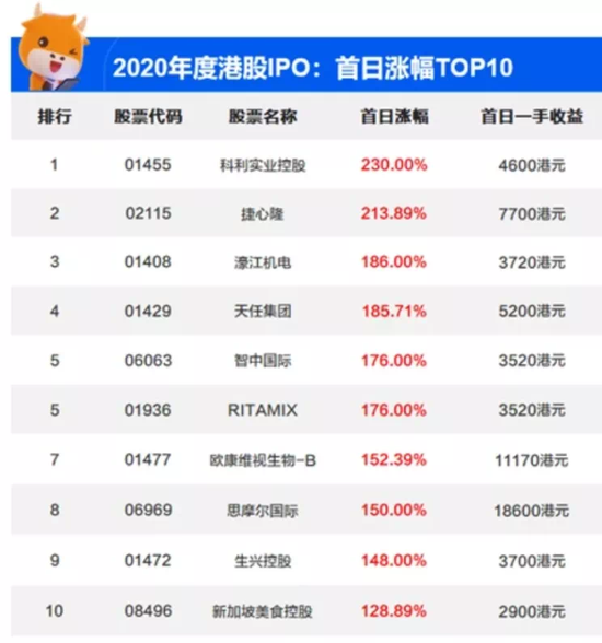 篇幅限制没有列完,2020港股IPO完成首日翻倍的股票,还有更多。