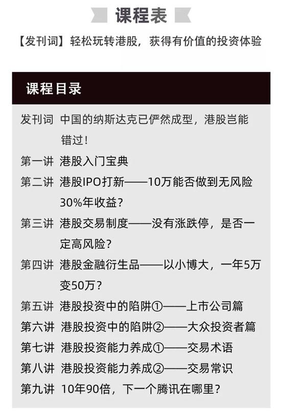 而这门课程理论与实践兼具,从IPO打新到港股市场基本制度、从港股的市场环境到主流资金投资方法,面面俱到地手把手教你投资港股!