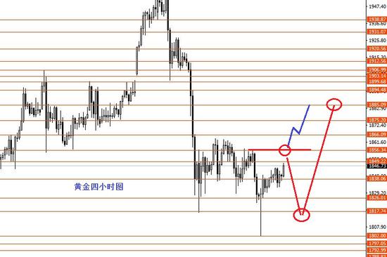黄金本周小幅震荡向上反弹,今日到达1850区域,从图形来看,今日成功上破并站稳1856上方的概率较小,所以关注1850和1856强阻力,今日短线选择右侧建仓做空,大框架图形未改变,所以若黄金能向下再次回踩后,延用周一大框架,还要做多,月线收盘前,思路以1800-1900区间震荡格局操作为主。因为波段主方向目前是多头,所以若短线做空,一定要采用右侧交易,等一小时图结合四小时图在1850-1856区域给了向下信号后再进场做空,下方继续关注1826和1817支撑,保守者建议只做多单。今日只有大概思路,红线概率较大,没有具体操作建议。