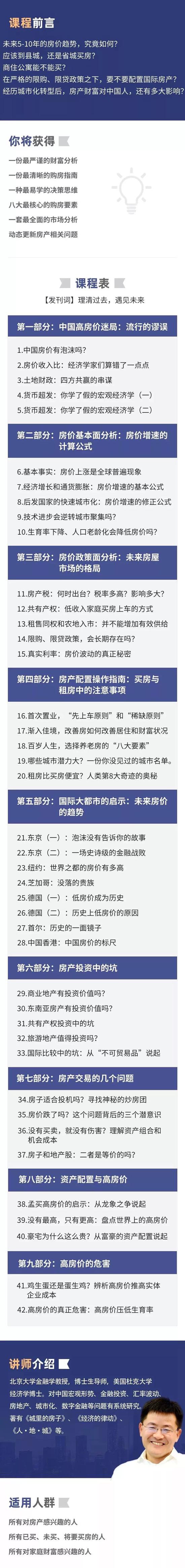42讲课程,浓缩了金融投资、房地产等内容精华,