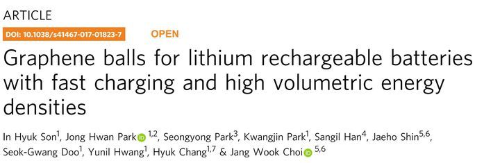 事实上,有些企业在命名时也足够谨慎。华为明确表示是在锂离子电池领域实现突破,推出的是“高温长寿石墨烯基锂离子电池”,而不是“石墨烯电池”。而三星石墨烯球电池技术的论文,标题是“用于快速充电和高体积能量密度的可充电锂电池的石墨烯球”,本质上仍是用石墨烯材料改善锂电池。