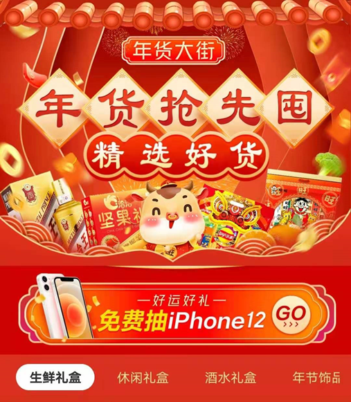 在永辉生活APP“年货大街”,各色年味活动正如火如荼展开。琳琅满目的商品,多项叠加的优惠,以及牛年喜庆的场景布置,年味十足的消费场景让用户好买、好逛、好玩。