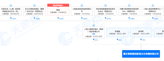 天眼查数据显示,霍尔果斯佟悦名新文化传媒有限公司为佟大为、关悦夫妇的关联公司,而霍尔果斯稻田影视文化传播有限公司的背后股东,即包括了芒果系、阿里系公司,以及华策影视(300133.SZ)、*ST中南(维权)(002445.SZ)等上市公司。