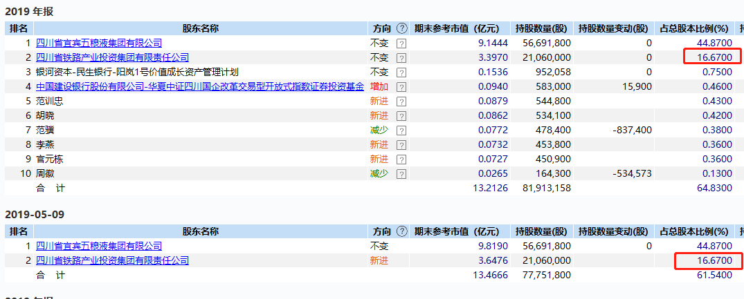 公告显示,四川省铁路产业投资集团有限责任公司持有宜宾纸业股份有限公司股份2,948.4万股,占公司总股本的16.67%。上述股份来自于认购公司非公开发行的股票。