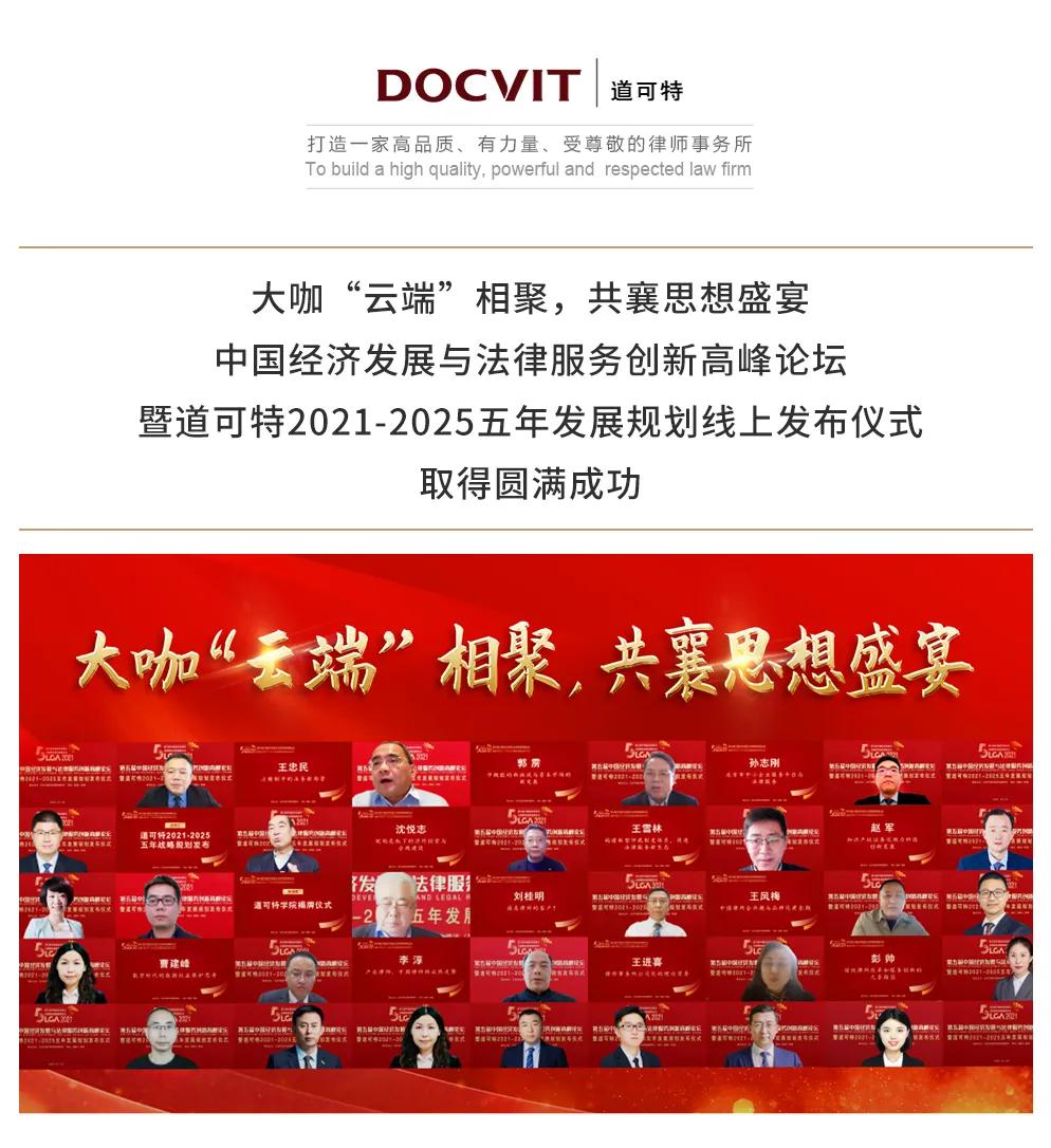 play中国经济发展与法律服务创新高峰论坛暨道可特2021-2025五年发展规划发布仪式取得圆向前向后大咖“云端”相聚,共襄思想盛宴——中国经济发展与法律服务创新高峰论坛暨道可特2021-2025五年发展规划发布仪式取得圆满成功