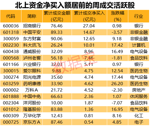 银行、证券为代表的大金融板块个股获北上资金重金买入。