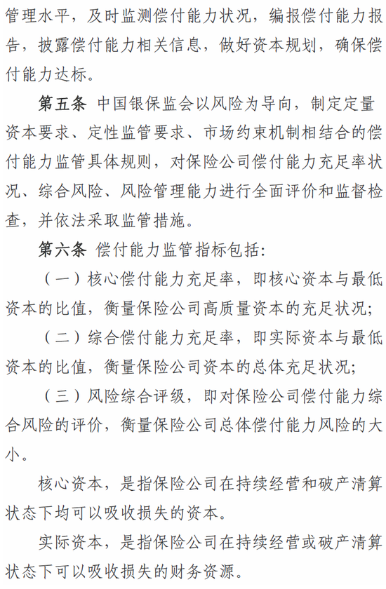 除此之外,还要求保险公司建立健全偿付能力风险管理的组织架构,偿付能力风险管理制度和机制,制定三年滚动资本规划等。