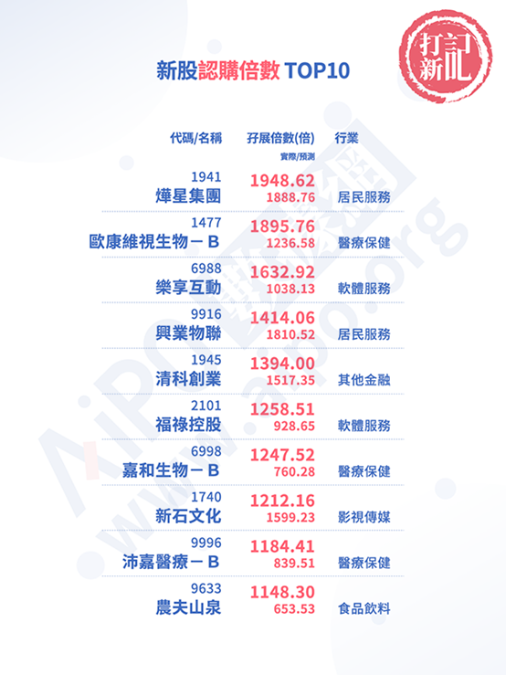 随着京东健康、京东集团、农夫山泉等的赴港上市,参与打新的投资者激增。AiPO数据显示,京东健康和农夫山泉等新股获得的认购总人均超过70万人。此外,多家公司的实际孖展倍数都远远超过预测,农夫山泉的实际孖展倍数为预测孖展倍数近一倍。