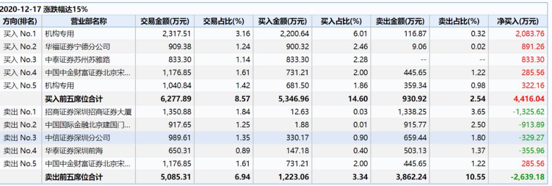 值得注意的是,期间的异动似乎印证前述说法。中文在线于2020年12月17日罕见大涨15.27%。而根据盘后龙虎榜信息,有两家机构合计净买入2405.92万元,占买方前五席交易金额的54.48%。