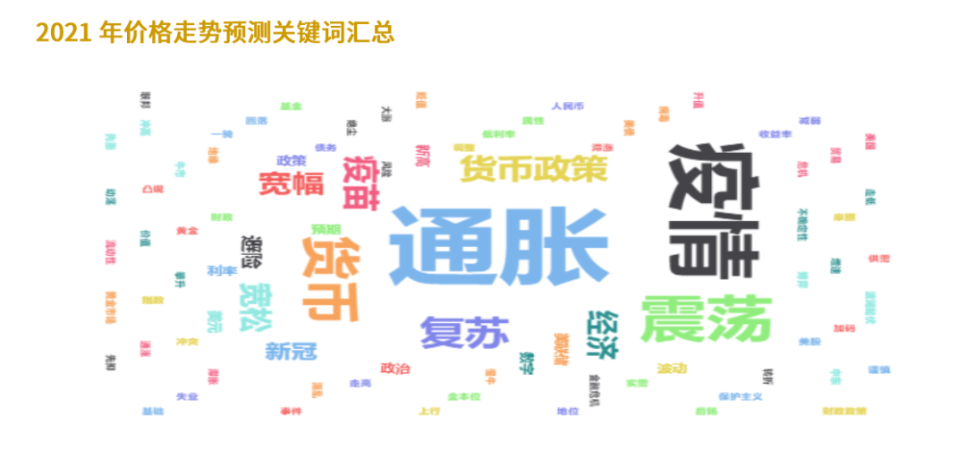 通胀是影响今年金价的主要逻辑。今年的经济通胀水平也会影响美联储政策,目前通胀还未走完,短期来看,未来一二季度,总体看多金价。相比2020年,今年金价不确定性增多,经济复苏也充满不确定性。
