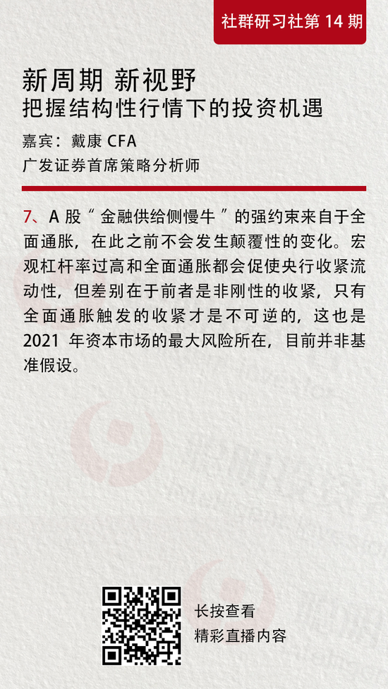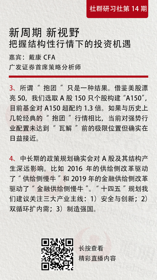 以上,是博道基金研究副总监、基金投资部总经理张迎军和广发证券首席策略分析师戴康,在聪明投资者1月26日举办的第14期社群研习社上,就如何把握结构性行情下的投资机遇这一话题,分享的最新精彩观点。