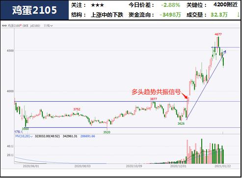 由于全国各地供暖供电压力变大,而交通运输受到疫情影响,动力煤供应需求端偏紧的情况当前仍未得到缓解。但是供给端由于2020年末进口放松,进口煤炭量大增,2020年末我国煤炭产量连创新高,往年一季度用电量都会又明显下滑,预计接下来一段时间动力煤短缺的现象将会得到缓解。近期动力煤跌破趋势线后盘面连续下跌,今日盘中再次大幅走弱,大小周期空头形态显现。操作上,空单注意锁定利润,建议底仓跟随。