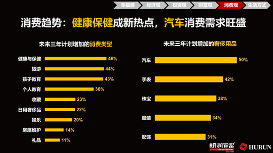未来三年购物计划:五成购买汽车,42%购买手表,38%购买珠宝,34%购买服饰,31%购买配饰。