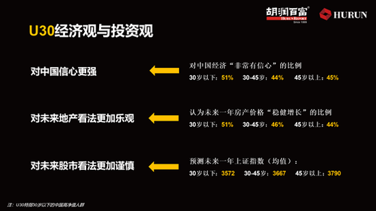 U30出生于90年代,在成长过程中见证了中国经济的高速发展,他们对中国未来经济的信心更强,对房价走势更为乐观,但对股市的看法较为谨慎。