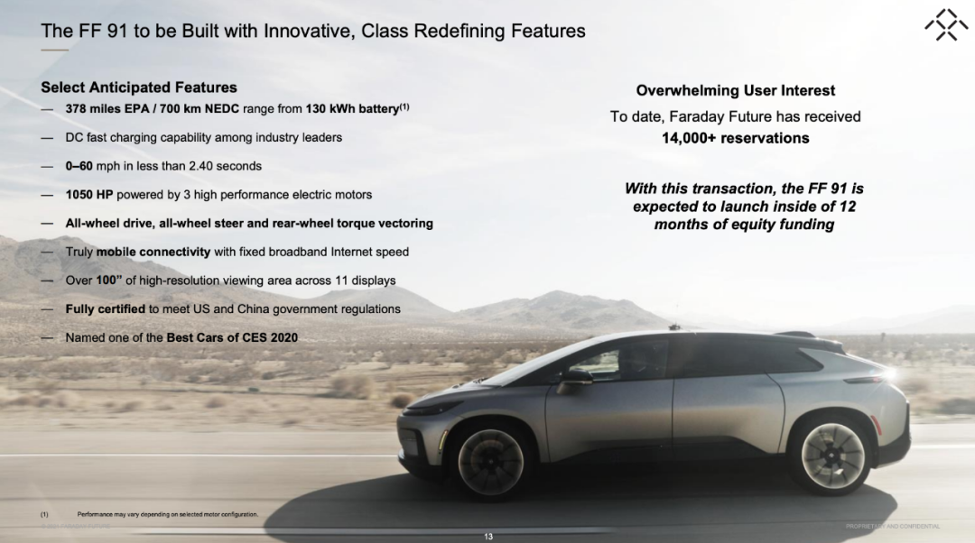 在消息公布后,法拉第未来召开了电话会议,并公布了一份投资人介绍报告。PSAC 董事长、联合创始人乔丹·沃格(Jordan Vogel)和法拉第未来的首席执行官毕福康(Carsten Breitfeld)回答了投资者问题。乔丹·沃格表示,在看过65个并购标的后,FF是目前最有竞争力的。他还重点介绍了FF现在的CEO毕福康在宝马等知名汽车企业长达20年的业界经验,并强调FF在过去的四年里已经投入20亿美元用于造车。