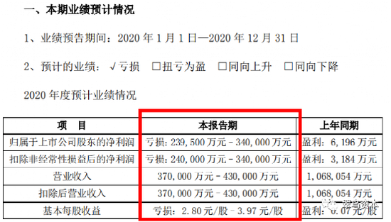 本周,该公司披露2020年业绩预告,净利润出现高达24亿元至34亿元的亏损。