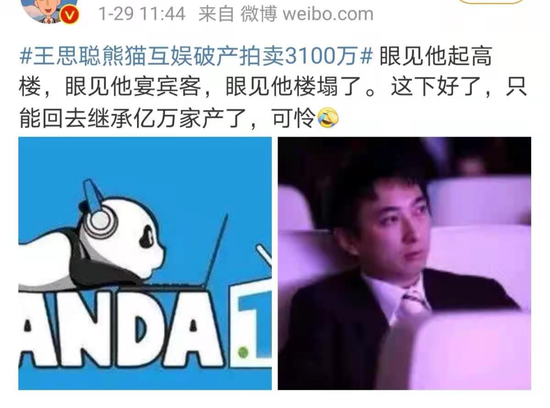 原标题:王思聪熊猫互娱破产拍卖3100万!刚又成被执行人,金额7700万!网友:真回家继承家产?