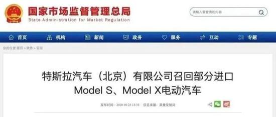 除了上述个例事件以外,特斯拉涉及整体性的质量问题也屡屡发生,2020年10月,国家市场监督管理总局发布公告,特斯拉汽车(北京)有限公司备案了召回计划,将召回部分ModelS和ModelX车辆,共计29834辆。