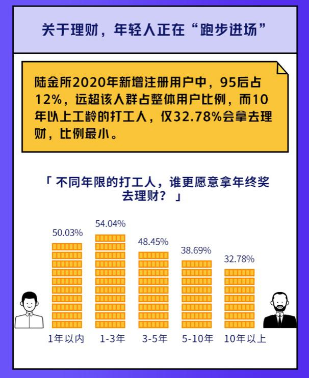 陆金所平台数据也显示,用户年末理财情绪高涨,2020 年 11-12 月用户平均每月在线时长,相比 1-10月平均值,陡增了近 50%,这是由于受疫情影响,往年占据大头的春节旅游费用被节省了下来,加上国内积极的投资环境以及“基金投资热”的带动,让手上有闲钱的人更愿意用投资理财来实现年终奖“钱生钱”。