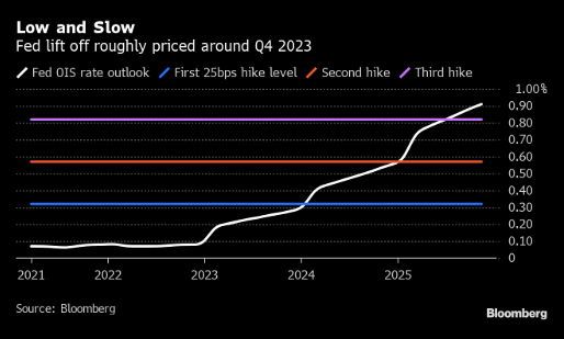 尽管美联储将重点转移到实现2%的平均通胀率上,但“市场仍然认为加息周期将更早/更慢,而不是更晚/更快,” Barclays Capital Inc.美国利率策略主管Anshul Pradhan在一份研报中写道。