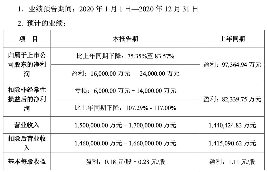 1月31日,东方日升发布业绩预告,公司预计2020年归母净利润1.60亿至2.40亿,同比下降83.57%至75.35%。