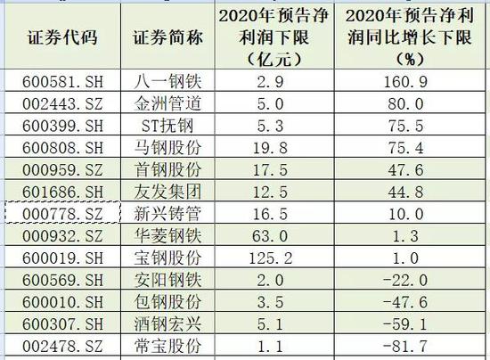 发钱是发钱,但上市钢铁的业绩如何?WIND数据显示,目前有13家公司家钢铁上市公司预告了2020年业绩。其中,八一钢铁(600581.SH),金洲管道(002443.SZ)、ST抚钢(维权)(600399.SH)、马钢股份(600808.SH)、首钢股份(000959.SZ)、友发集团(601686.SH)、新兴铸管(000778.SZ)等净利润增幅靠前。