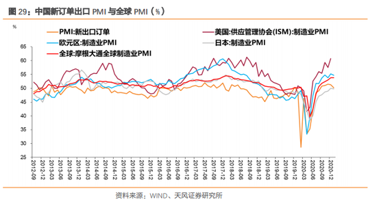 对2021年1、2月与一季度出口数据的预测我们主要参考以下四方面数据: