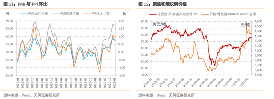 1月全球大宗商品价格中枢继续抬升,PMI出厂价格指数57.2%、购进价格指数67.1%,预计1月PPI转正至0.4%。考虑到疫苗和疫情防控进展可能低于预期,全球需求回升或偏弱,近期大宗商品价格亦出现一定的调整,未来PPI环比回升的幅度大概率放缓。