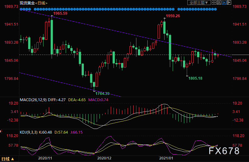 周二(2月2日)亚洲时段,现货黄金探底回升,一度受到白银下跌的拖累,不过美元的下跌支撑了金价,目前交投于1861附近。另外,美联储官员博斯蒂克的鹰派表态让黄金多头有所担忧,而美国强劲的制造业数据一定程度上印证了博斯蒂克的预期。拜登刺激案在白宫内部也遭遇质疑,面临缩减规模的可能,这些因素均不利于黄金的上涨。