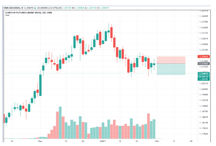 基本面上,2月份将可能看到美国经济复苏的首批经济数据,新的刺激政策和更好的疫情管控将产生效果,同时美国的通胀前景继续提升。而欧洲央行倾向于“建设性的模凌两可”,以对抗欧元的强势。就降息本身而言,市场已经定价了年底前削减5个基点,令欧洲央行使用这一工具出奇制胜的机会不多。技术面上,。综上,建议短线做空欧元兑美元,卖出点位1.2140,止损1.2180,止盈1.2080,及时移动止损保护盈利。