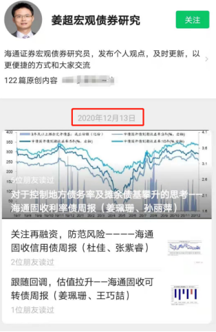 2020年12月15日,梁中华以海通宏观团队的身份回归。巧合的是,姜超的公众号最后一次更新时间是2020年12月13日。