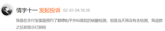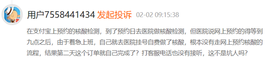 “我也是在支付宝上搜索‘预约核酸检测’,点进去后直接选择第一个链接进行了预约,当时也没注意到是由什么机构提供的服务,只是以为预约上就可以直接去预约的医院进行检测了。”2月3日,上海消费者石先生也向《中国消费者报》记者反映了他的遭遇。