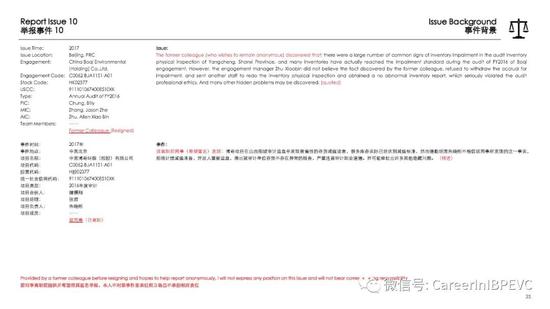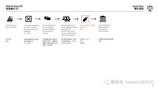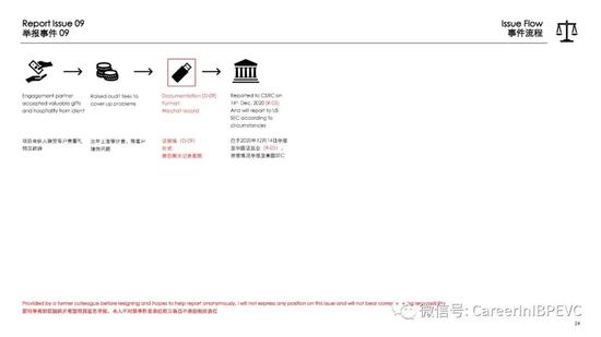 据新京报报道,50页的PPT公列举了10个违规事件,其中8个为PPT作者亲身经历,2个为代离职员工举报。涉事的员工,不但含有高级经理、高级审计员,甚至合伙人也参与其中。