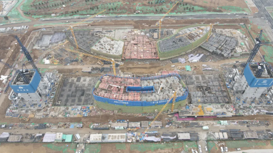 春节临近,作为十四运会的配套工程——绿地丝路全球文化中心施工工地,机械轰鸣、一派繁忙。