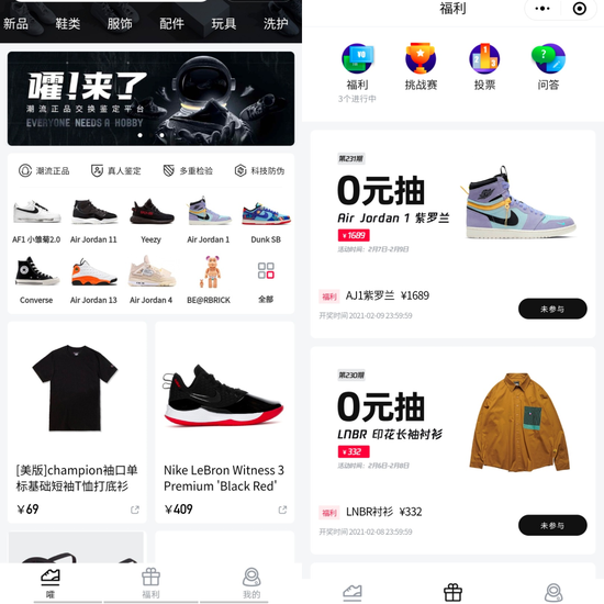 这里最典型的就是腾讯。腾讯体育在2019年推出了一个名为“嚯社区”的业务,这是腾讯第一次试水拓展球鞋业务,对标的是“得物”App。依靠腾讯体育在比赛直播的推广,甚至包括了送奔驰车的活动,让嚯社区在腾讯体育的粉丝中站稳了脚跟,给大量喜欢潮牌球鞋的用户,提供了一个新的平台。