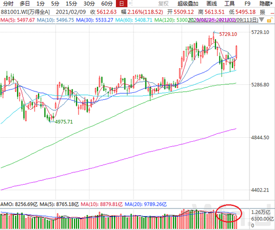 2月9日,万得全A成交金额达8200多亿元,连续10个交易日低于万亿,考虑到临近春节长假,对比历年春节前夕,成交量萎缩属于正常现象,且从绝对额来看,仍维持在8000亿元以上的成交规模,市场依旧维持较高活跃度。