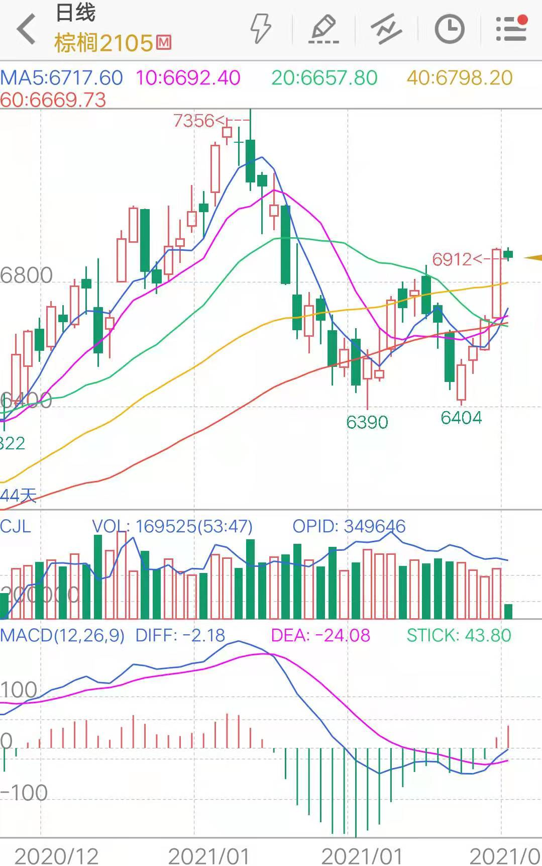 “从节后来看,原油的走势是至关重要的,目前很多化工品都处于价格偏低阶段,与原油目前的涨势完全不合拍,且一旦假期原油继续上涨,那么整个化工系的估值都要重新进行评估。但原油在连续上涨之后,会不会出现一波较大幅度的回调是未知数。如果假期原油出现较大幅度的回调,那么当前化工品的低估值就是合理的,节后相对就会表现偏稳定。”于芃森说。