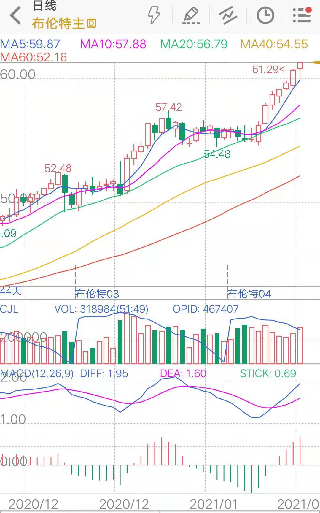 “周二能化板块普遍上涨,主要还是受国际油价连续上涨推动,周二原油延续前期涨势,布伦特原油盘中站上61美元/桶。近期原油市场利多不断,OPEC+限产继续,EIA给出了一季度原油严重供不应求的预期。”招金期货能化研究员于芃森表示,在原油持续上涨之下,燃料油、沥青延续涨势,并有创出一年多来新高的可能。而液体化工品相对偏弱,主要还是各自基本面相对偏弱,部分库存较高、新增装置投产预期较多的品种,依旧处于偏弱的态势。