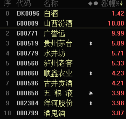 在茅台的拉动下,多只白酒股风生水起,一线白酒泸州老窖、五粮液、二线龙头山西汾酒盘中股价先后创下历史新高。其中,山西汾酒更是强势涨停,水井坊、顺鑫农业、古井贡酒、洋河股份等纷纷跟涨。